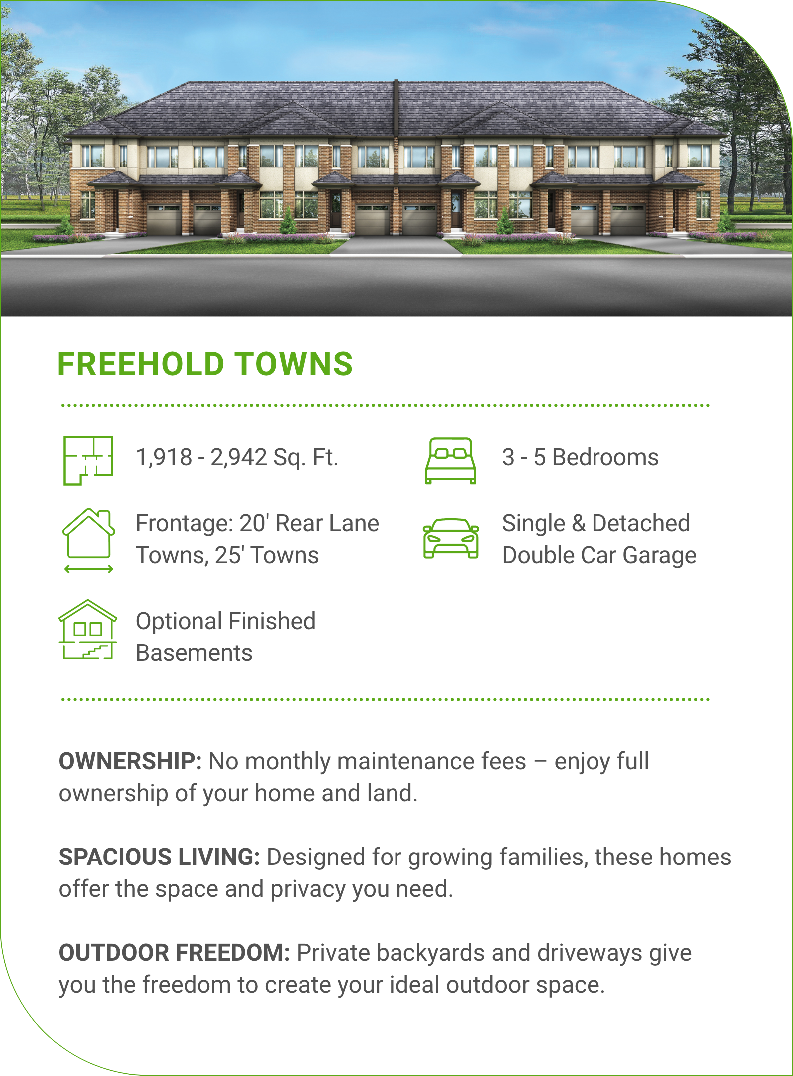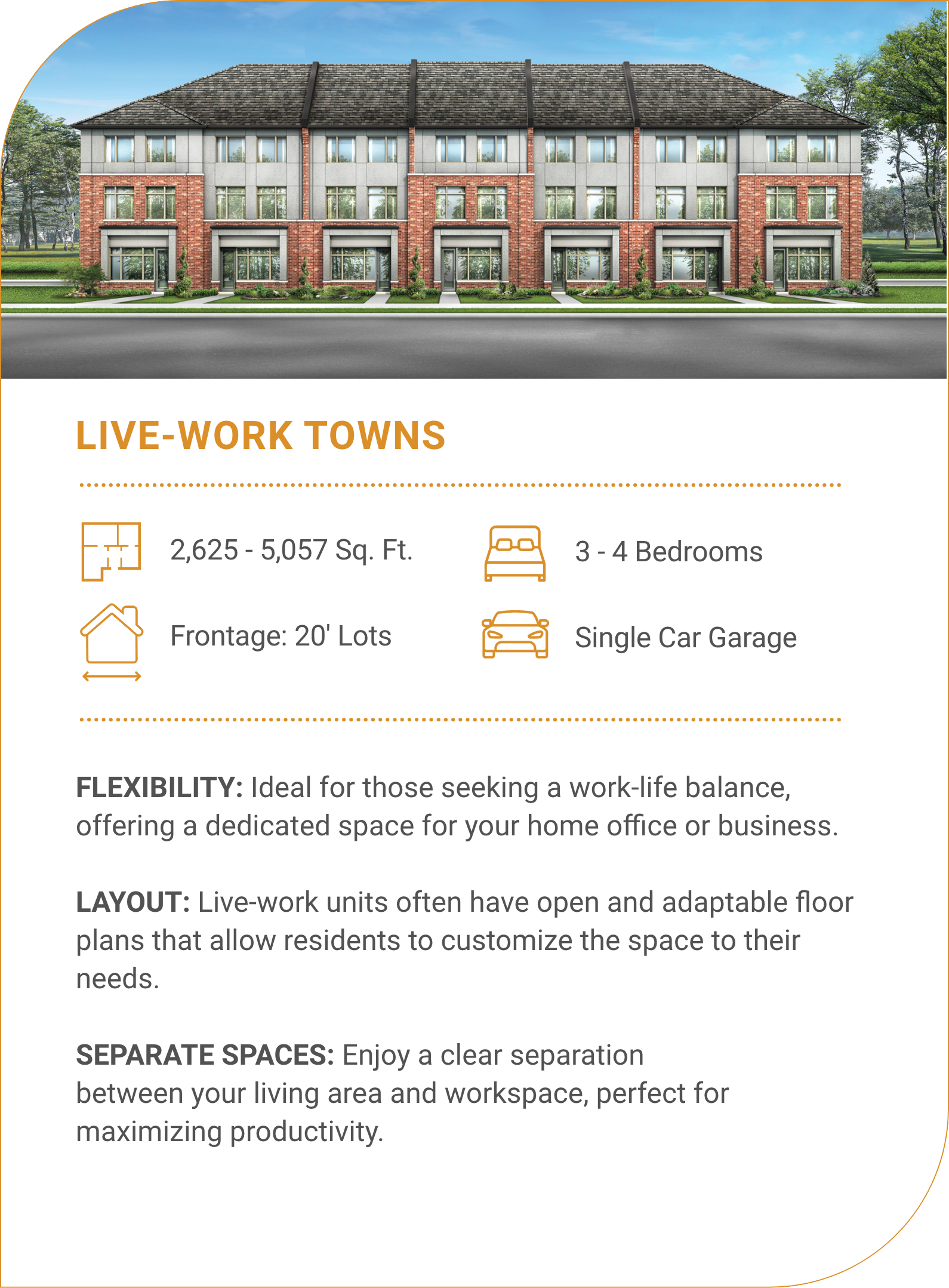 Our 20'-25' Freehold Towns and 20' Live-Work Towns are where modern living meets an exceptional lifestyle.